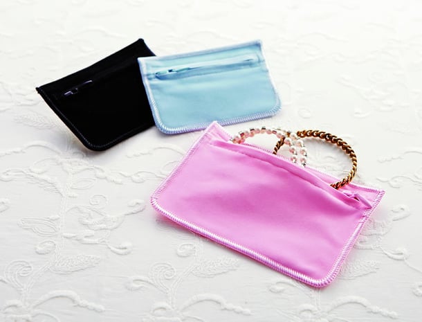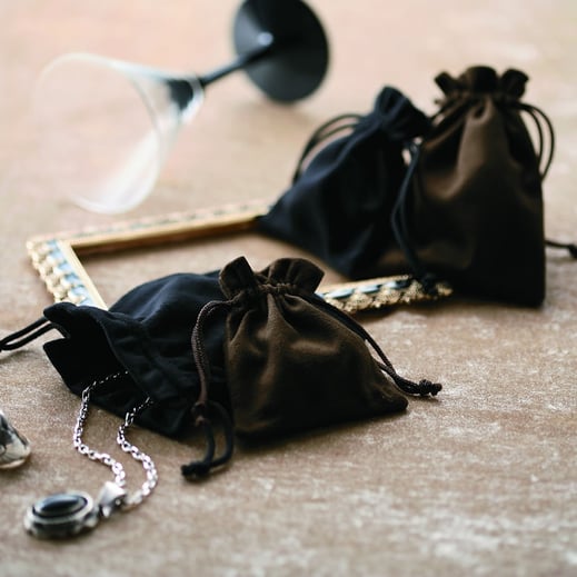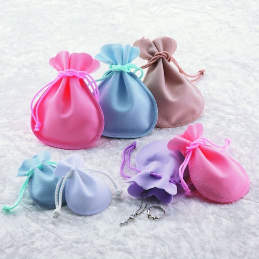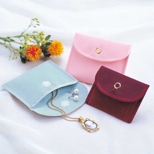 角型やきんちゃくタイプのスエードポーチは、ジュエリーやアクセサリーを大切に包み込んでくれる、ベストアイテムです!