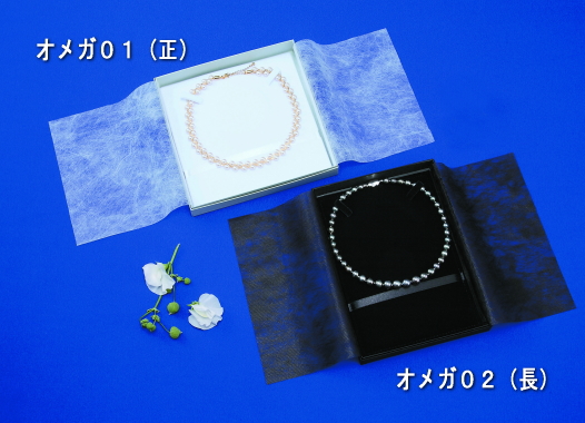 パールネックレスやオメガタイプのネックレスに最適な、合わせ箱タイプのケースです。 ブラックとグレー/ホワイトの2種類で、サイズも2パターンありますので、商品にあわせてお使いいただけます。